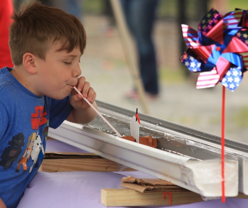 Propelling his sailboat with "wind" Snack bar run by the Eastern Pike Soccer Club Checking out the piglets at the petting zoo